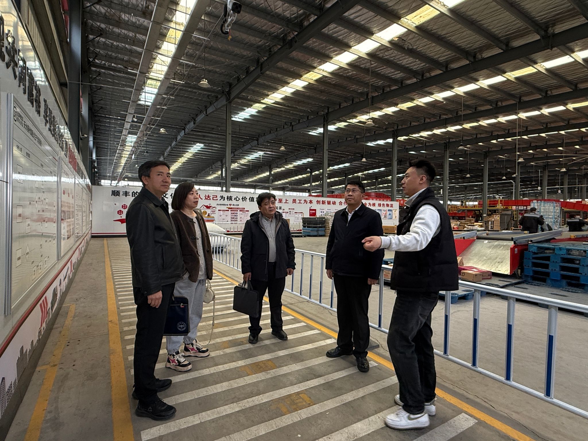 在顺丰速运(天水秦州转运站),团队在企业负责人孙云龙陪同下,实地考察了智能分拣车间、全自动化仓储管理系统及客户服务调度中心。孙云龙详细介绍了顺丰依托大数据、人工智能实现的运营模式变革,以及企业在甘陕川毗邻地区布局区域枢纽的战略规划。团队重点关注了企业数字化转型升级后对复合型财经商贸人才的新要求——既需要精通大数据分析、成本控制的财经人才,又需要熟悉智慧物流运营、供应链管理的技术骨干。双方立足教育部“推动科技创新和产业创新深度融合”要求,就物流信息技术、供应链成本控制等课程嵌入企业真实案例达成初步意向。