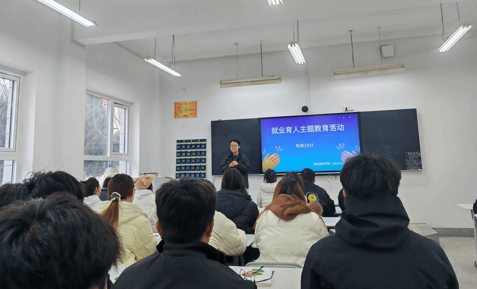 活动以班级为单位开展,形式务实、内容贴近学生实际。各班主任立足财经商贸类专业特点,紧扣产业需求,围绕就业政策、简历准备、求职心态等内容进行讲解。针对学生目标模糊、行业认知不足等问题,老师们结合当前就业形势和头部企业用人标准,引导学生从大一夯实专业基础、考取技能证书、参与实习实训,推动人才培养向综合能力提升转变。