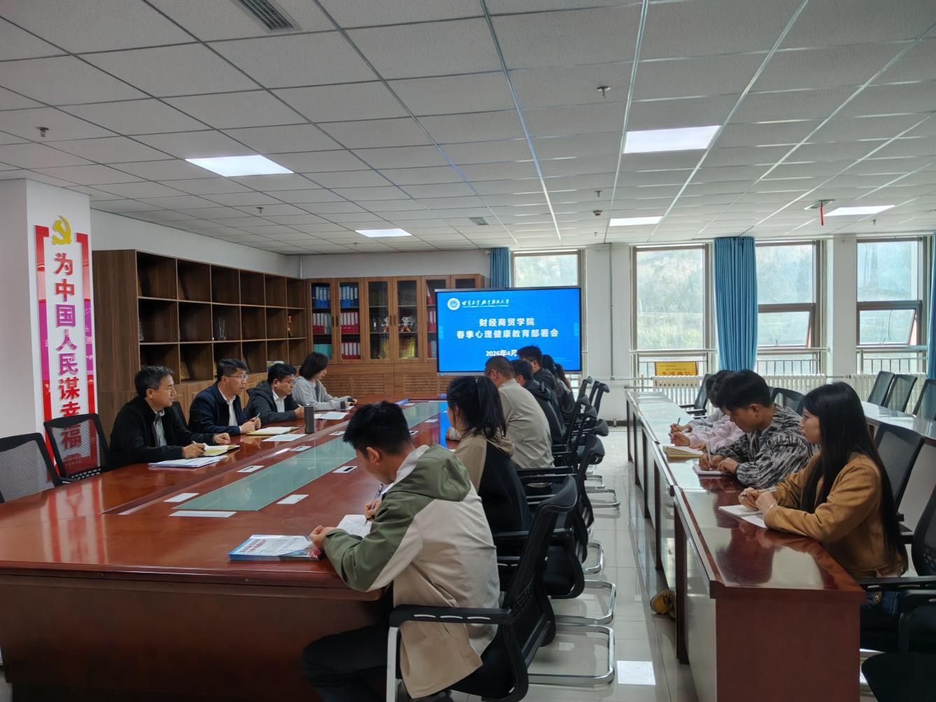 为切实筑牢学生心理健康防线,护航学生健康成长,近日,财经商贸学院召开春季学生心理健康工作专题部署会,学院领导班子、全体辅导员、班主任参会。会议对春季学期心理健康教育与危机干预工作进行全面安排部署。