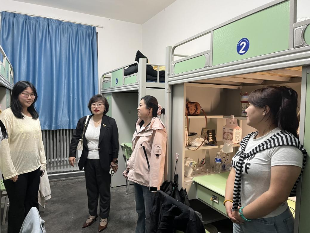 “刚到学校还习惯吗?和室友们相处得怎么样?”每走进一间宿舍,王玥院长都先与新生们亲切拉家常,从饮食是否适应、住宿是否舒心,到入学后对校园环境的熟悉程度,细致询问生活点滴。她反复叮嘱新生:“遇到任何困难别客气,班主任、辅导员都是你们的‘校园家人’,及时沟通就能及时解决。” 同时,她鼓励大家尽快打破陌生感,在集体生活中学会包容互助,在相互陪伴中快速融入经管大家庭,共同开启大学成长新旅程。