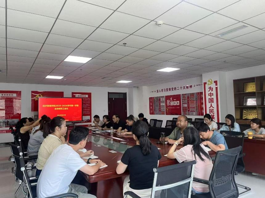 为统筹推进新学年教学工作,深化教育教学改革创新,2025年8月24日下午经济管理学院在明德楼901会议室组织召开了2025-2026学年第一学期全体教职工会议。学院党总支书记谢宏斌,院长王玥,副书记赵红红,副院长李金龙及全体专职教师参加会议,谢宏斌主持会议。会议围绕师德师风、规章制度、教学规范化建设、教学质量提升及实训安全管理等内容展开,对新学期部门工作重点做了统筹安排。