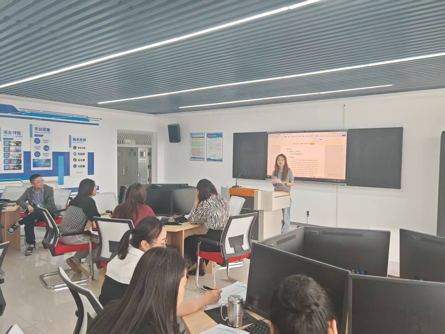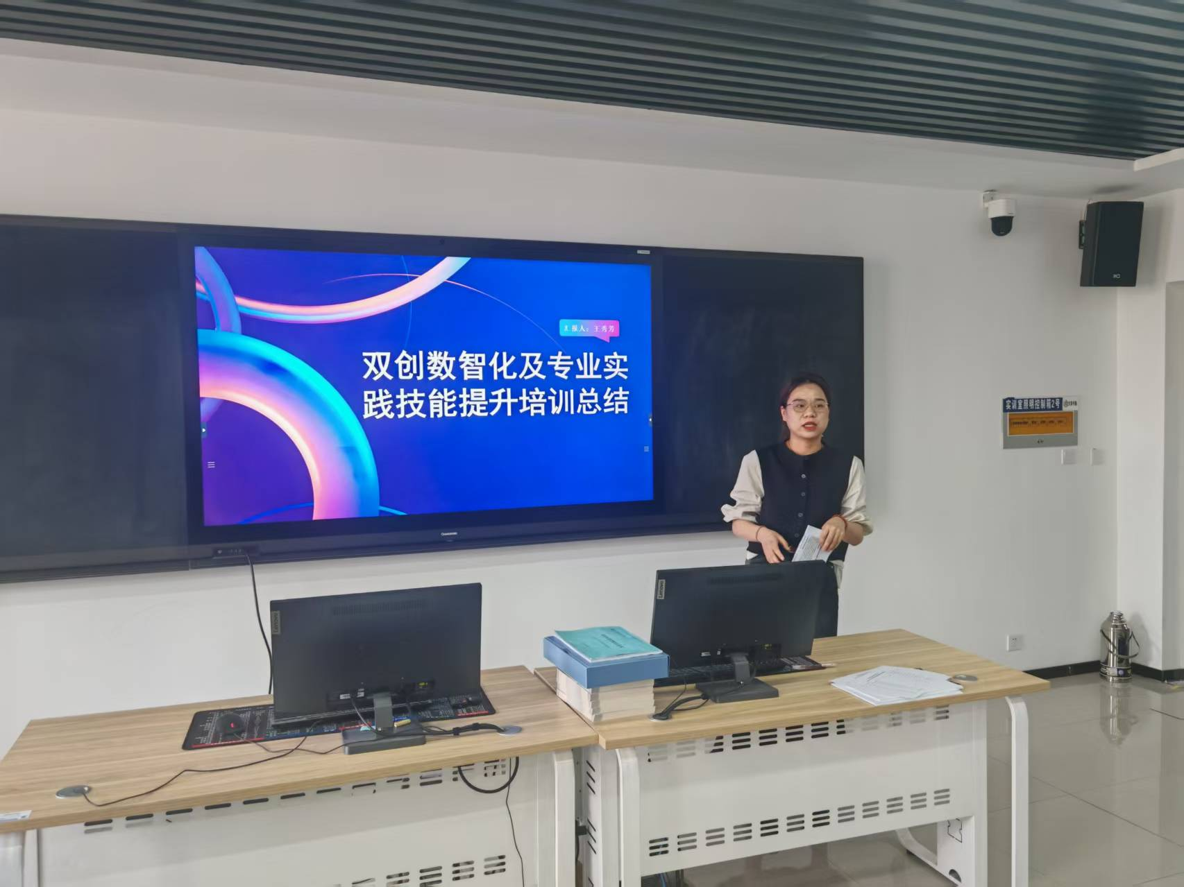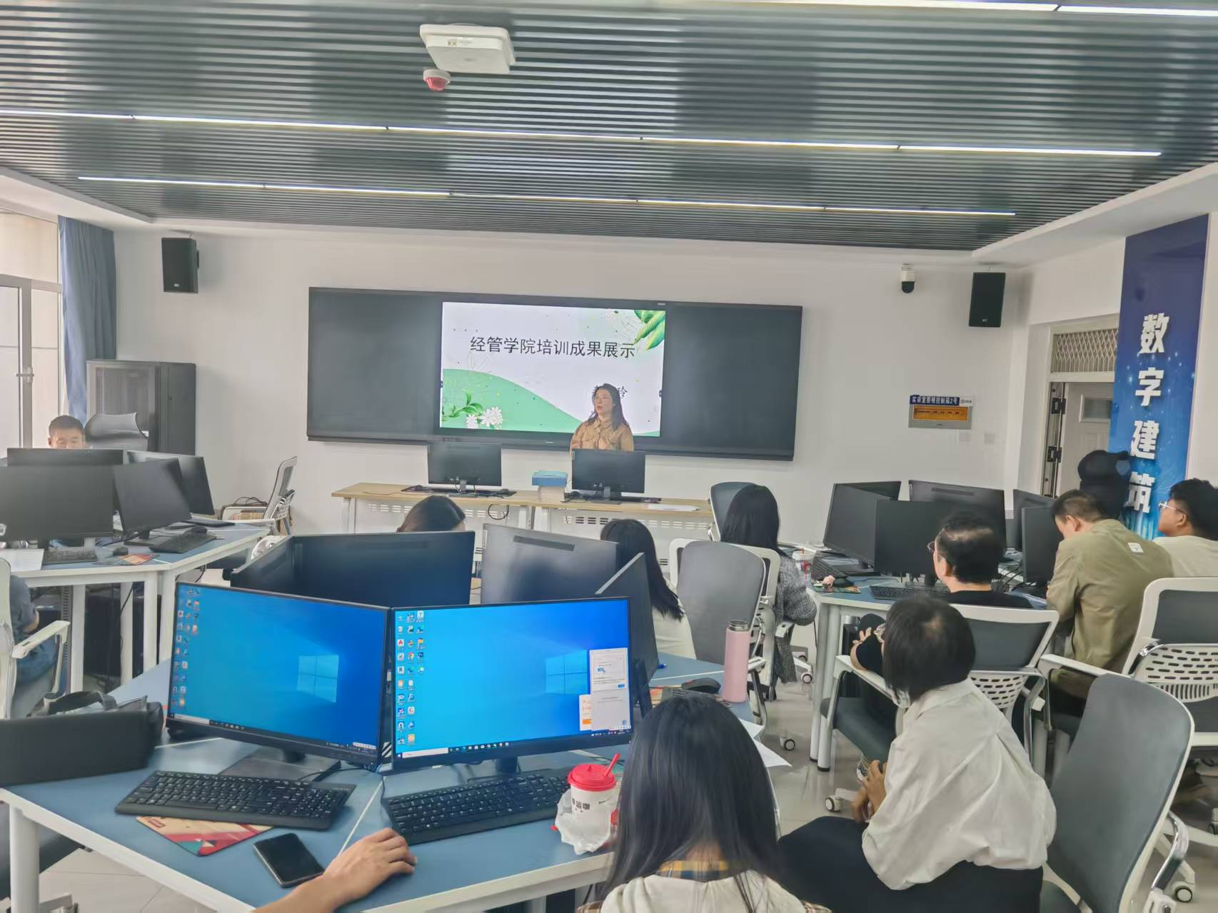 为响应省教育厅2025年职教活动周“一技在手,一生无忧” 的主题号召,同时强化学校青年教师专业实践技能,提升专业技能水平,经济管理学院组织“双创数智化及专业实践技能提升培训班”青年教师于2025年5月16日下午在明德楼B606、B608分两组开展了实践技能培训交流总结展示活动。29名青年教师轮流展示了培训班学习成果和心得,讨论了今后自身实践技能进一步培养发展的途径。