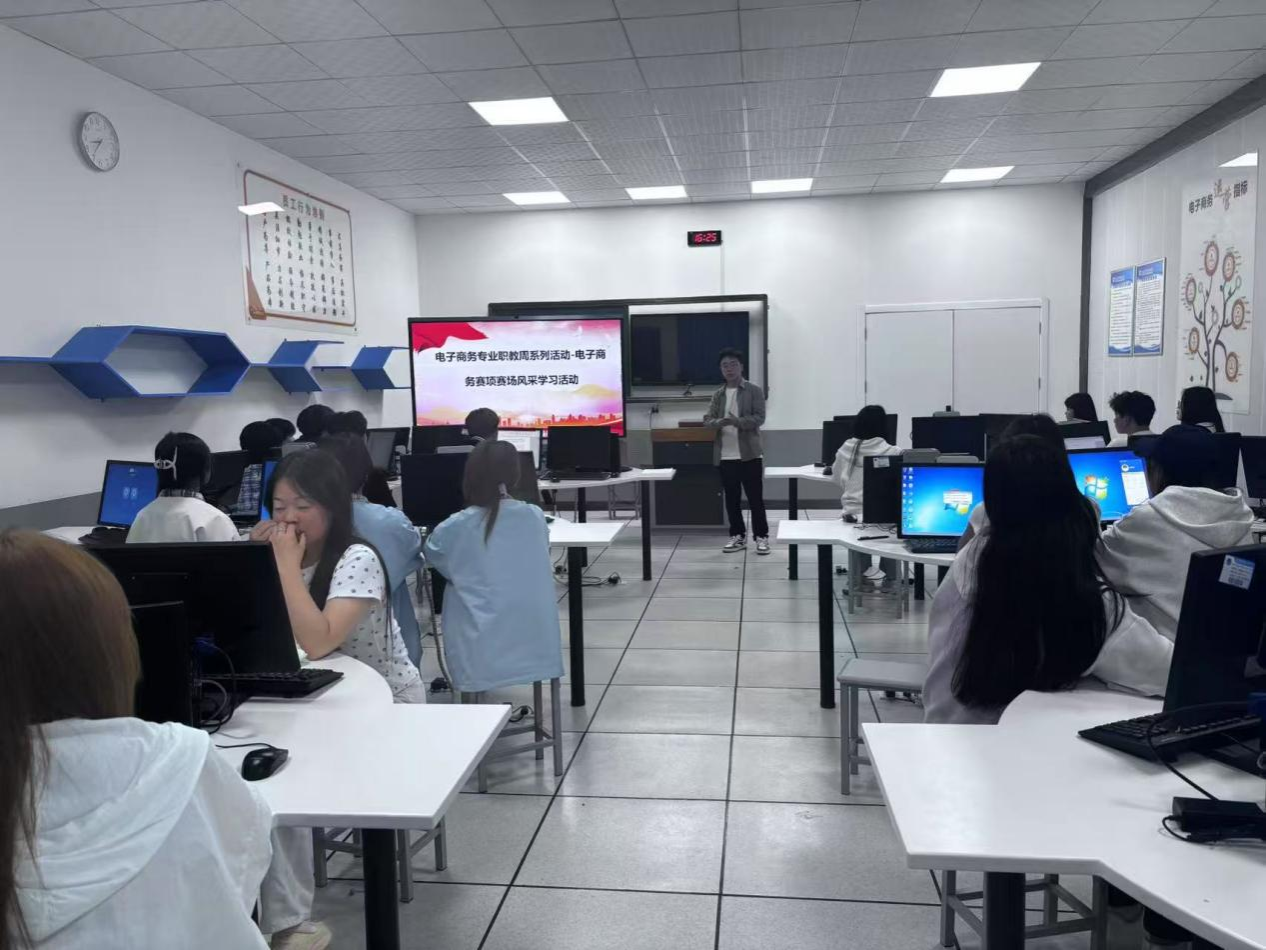 活动伊始是电子商务赛项风采学习环节。专业教师通过展示过往优秀参赛作品、播放比赛现场视频,让同学们直观感受到电子商务竞赛的激烈与魅力,从电商平台的运营策略,到营销推广的创意构思,再到客户服务的贴心细节,每一个赛项环节的精彩呈现,激发了同学们对专业学习的浓厚兴趣。
