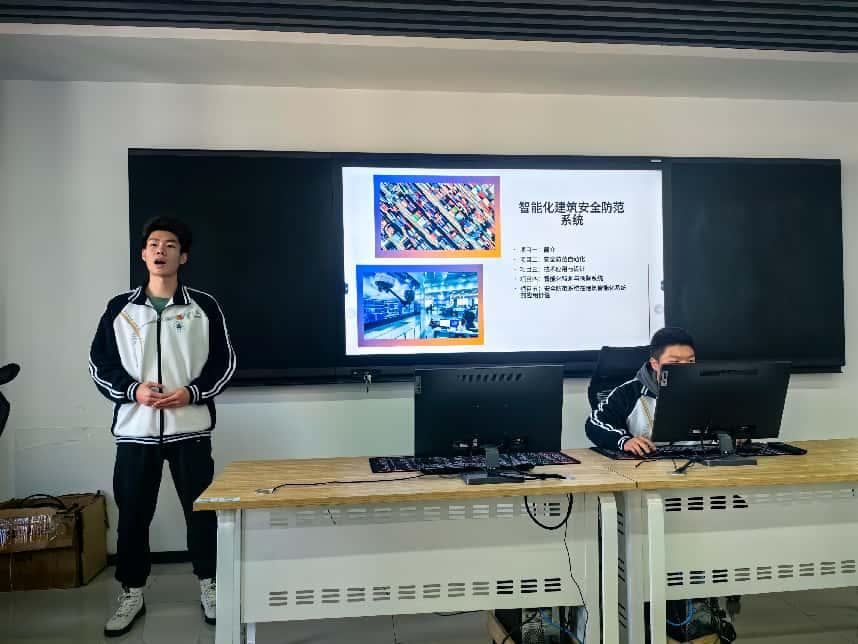 在活动现场,学生们分组进行建筑智能化设备的安装与调试,一人利用软件进行模拟操作的展示,另一人负责PPT的专业知识讲解,他们专注操作,精细调试,充分展现了他们的专业技能和团队协作精神。展示结束后,评委老师依据评分标准进行现场评分,评分内容涵盖软件模拟操作的精确性、PPT讲解的专业性和清晰度、团队合作的默契程度等方面。同时,设置观众提问环节,鼓励学生之间的互动交流,增强学习氛围。