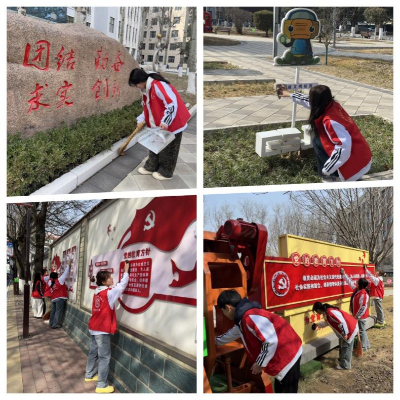 3月11日,我院开展了“学雷锋,净校园”志愿服务活动,组织学生清扫南校区中心花园、擦拭指示牌、路灯、设备模型等。旨在弘扬“奉献、友爱、互助、进步”的志愿服务精神,践行学雷锋志愿活动。
