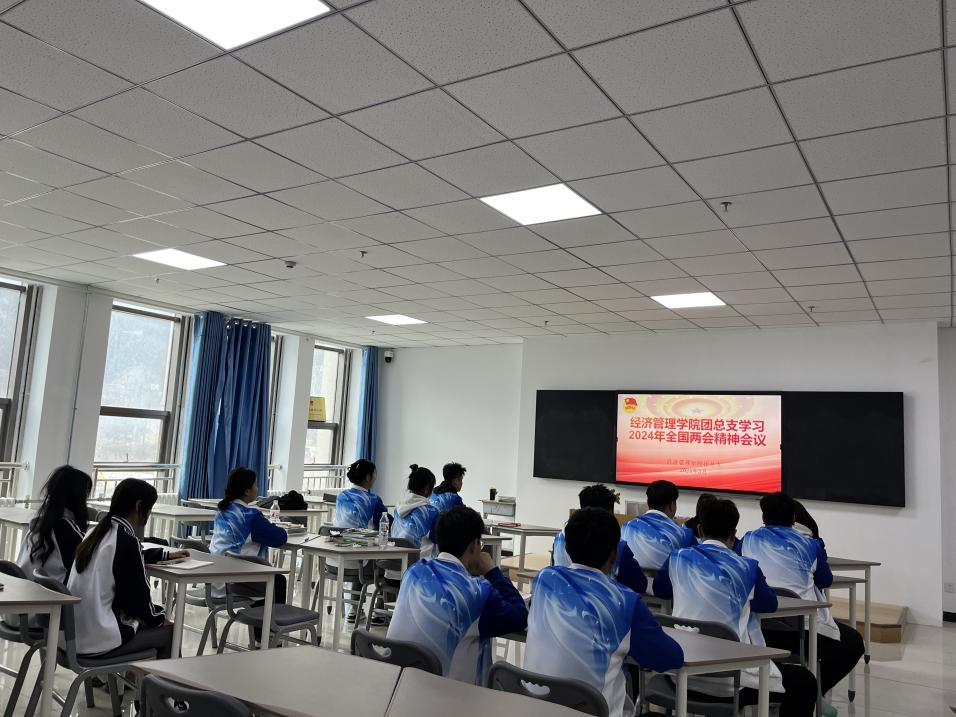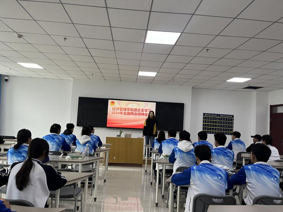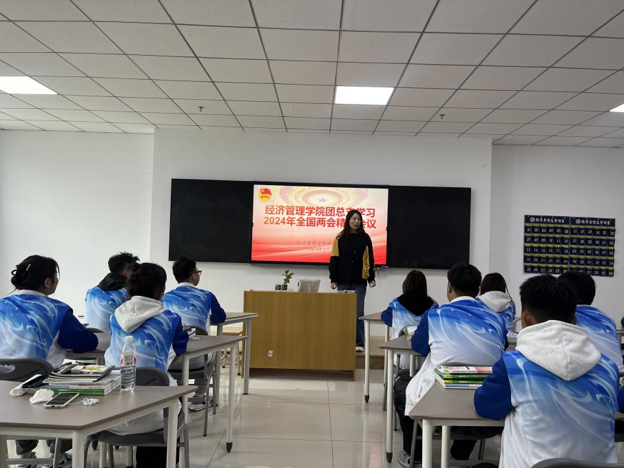 为深入学习贯彻习近平新时代中国特色社会主义思想,学习十四届全国人大二次会议及全国政协十四届二次会议精神,2024年3月15日下午,经济管理学院团总支团学干部、各班团支部书记在1-A502教室开展了全国两会主题学习研讨活动,活动由经济管理学院团总支书记林阳阳老师主持。