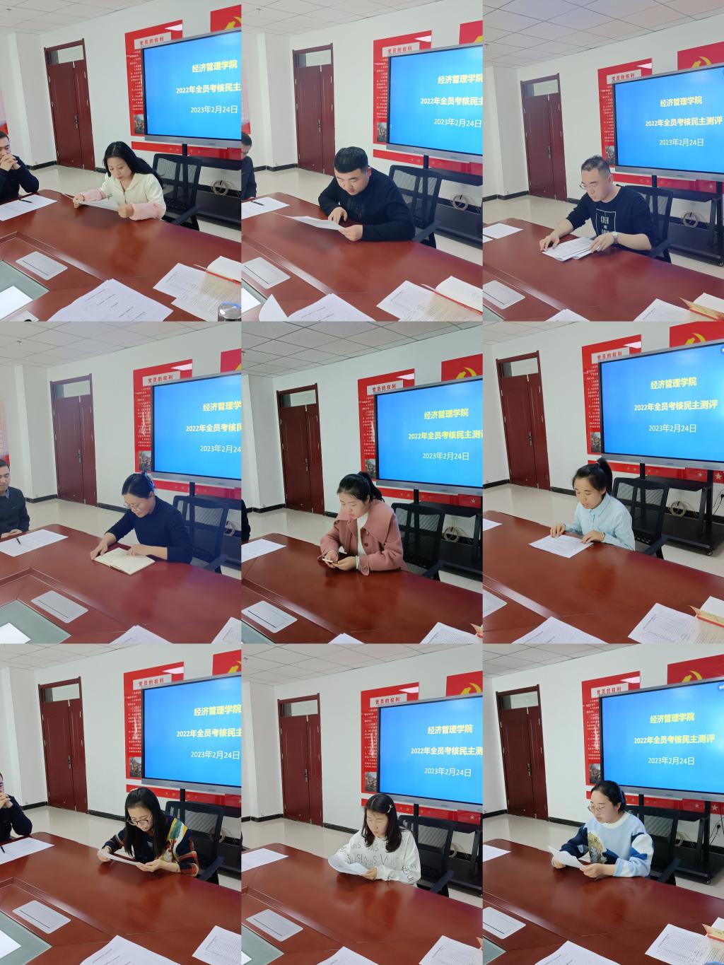 为进一步总结经验、找准不足,全面考核全体教职员工一年来的履职情况。2023年2月24日下午,经济管理学院召开了全员考核民主测评大会,会议由经管学院党总支书记、院长赵典凯主持,党总支副书记王玥、院长助理张正旭、李金龙及全体专兼职教师参加了会议。