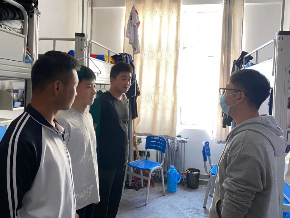 自3月14日封校以来,王杰一直坚守在南校区。除日常事务外,他每天都深入学生宿舍,与学生进行交谈,并提醒学生每天按时起床,打扫干净卫生,开窗通风,做好每日体温检测。面对学生提出的诉求,他都在认真聆听,竭尽全力帮助学生解决困难;面对学生因封校产生的心理压力,他多次找学生谈心,帮助学生消除疑虑,缓解心理压力,并且在空闲之时和学生一起去体育场进行适当的锻炼,提高学生的身体素质,从而增强免疫力。
