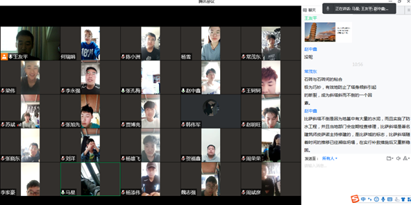 线上教学过程中,老师们充分结合超星直播、腾讯会议、钉钉等不同教学平台的优势,通过师生、生生之间的积极互动,活跃线上课堂氛围,提高线上教学质量。有的老师要求同学打开视频来发言,通过摄像头面对面交流看看有没有认真听课。有的老师利用课堂提问、宿舍间讨论等方式提升学生参与课堂的兴趣,给予学生充分表达的机会,对于回答问题积极、坚持独立思考的学生进行及时表扬,对课堂上不专心的学生及时提醒,确保学习效果。老师们通过与学生随时沟通互动,展开讨论、布置和批阅作业,加强学生对课堂内容的把握和理解。