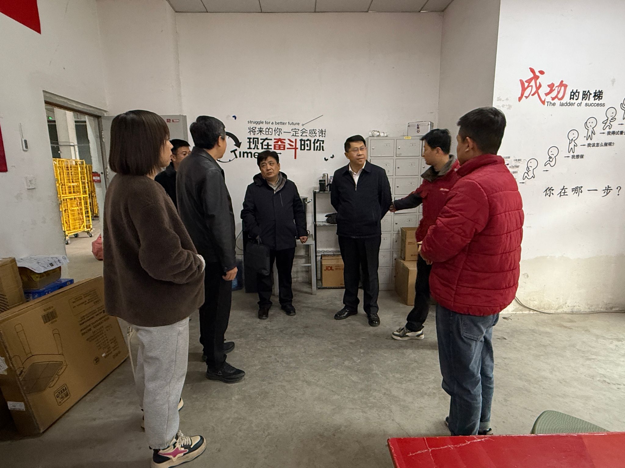 为深入贯彻党的二十届四中全会关于“一体推进教育科技人才发展”“加快高水平科技自立自强,引领发展新质生产力”的战略部署,全面落实教育部《关于深化职业教育教学关键要素改革的意见》中“以产定教、以产引教、以产改教、以产促教”的核心要求,按照《甘肃工业职业技术大学“优企引才”定向访企拓岗促就业专项行动方案》安排,财经商贸学院党委坚持就业“一把手”工程,充分发挥党组织在教育教学改革中的政治引领作用。2026年3月3日,学院党委书记李玉林、院长闫坤伦带队,一行5人先后深入顺丰速运(天水秦州转运站)、京东物流天水运营中心,开展以“数智财经+智慧物流”为主题的专业群对接产业调研走访,以“访”促“拓”、以“融”促“育”,全力构建校企协同育人新生态。