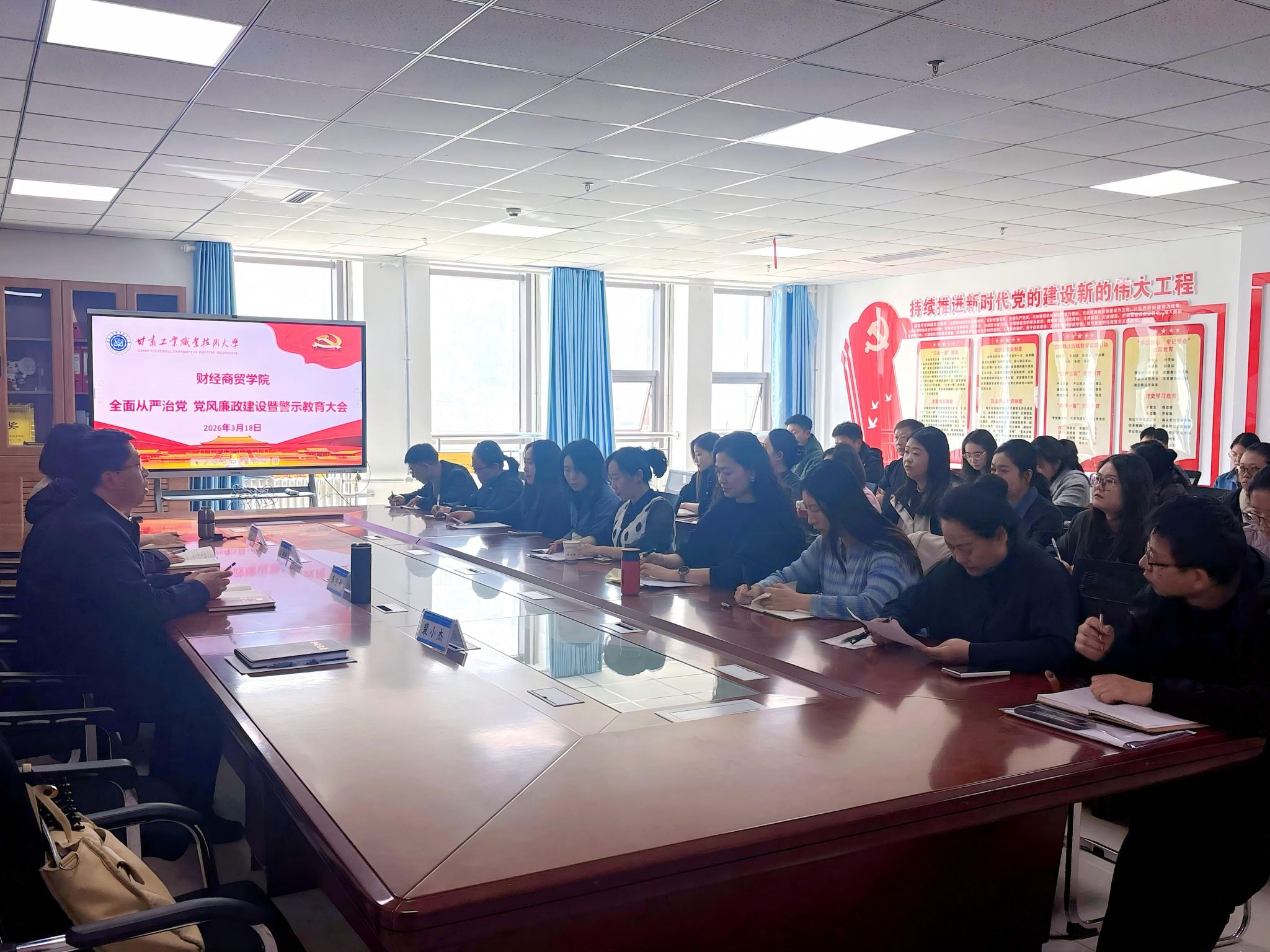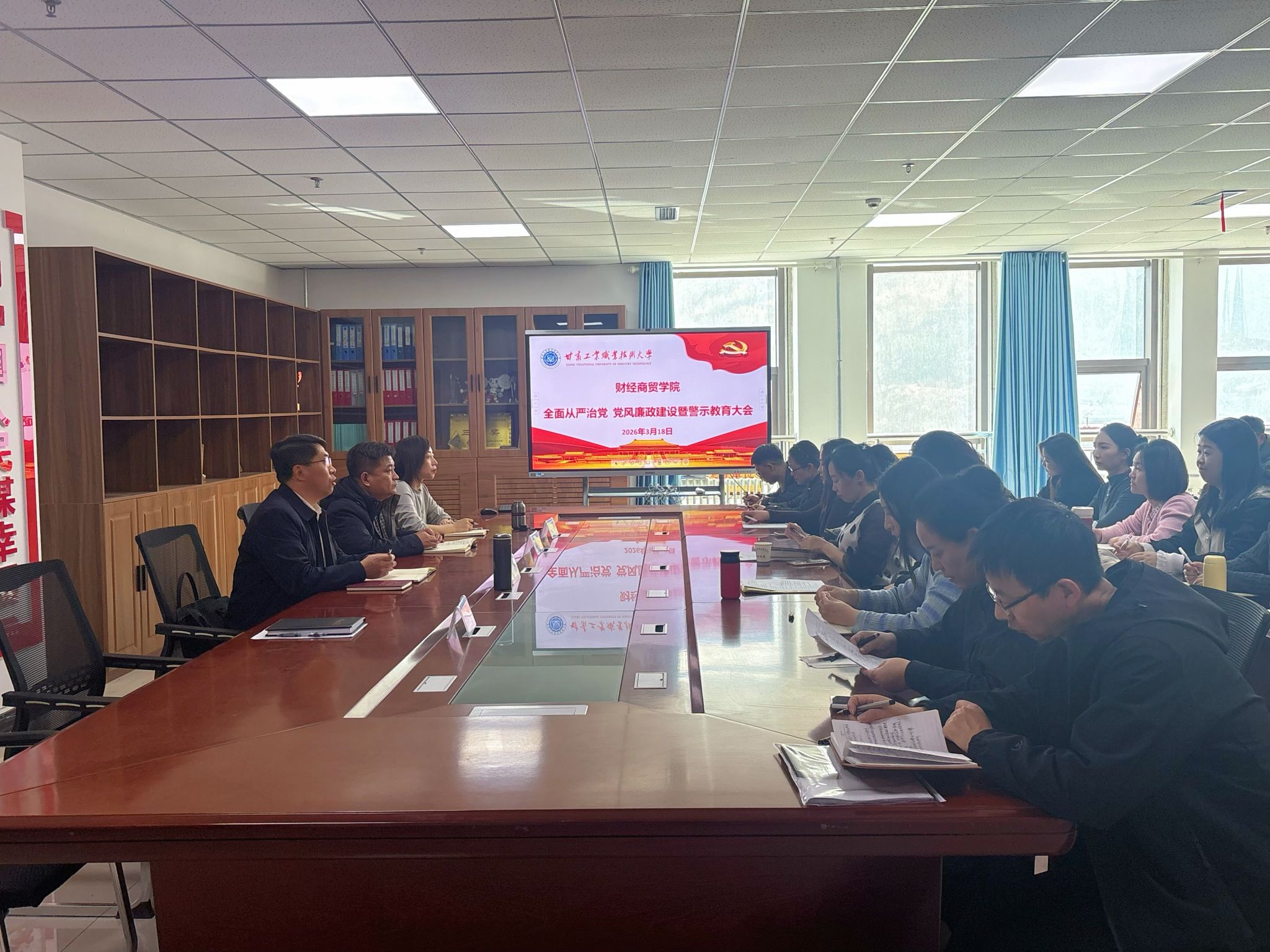 3月18日,财经商贸学院召开2026年全面从严治党工作会议暨警示教育大会,全体教职工参加会议。