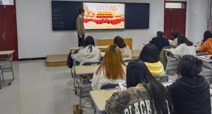 为深入学习贯彻落实全国两会精神,全面领会其深刻内涵及精神实质,2024年3月17日晚自习,经济管理学院各班团支部组织开展“学习两会精神·践行青春使命”主题团会活动。