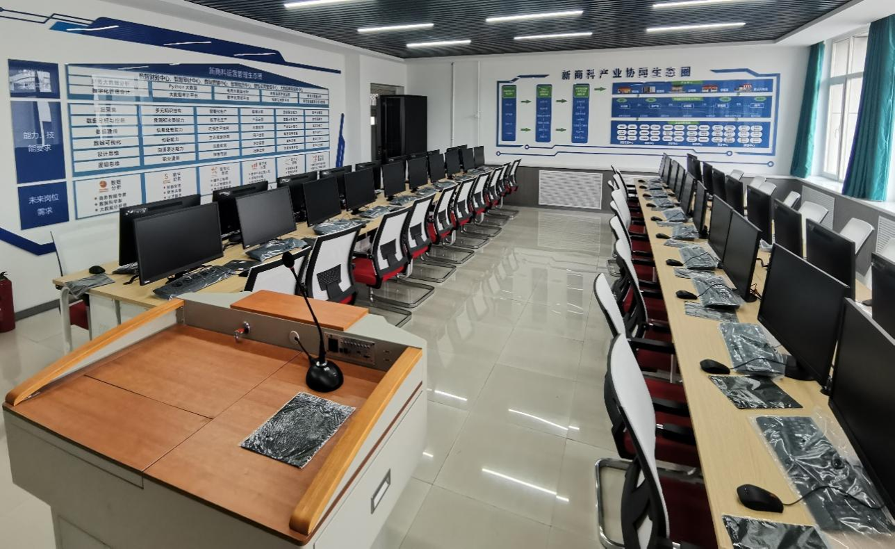 本实训室主要面向电子商务、现代物流管理、大数据与会计、市场营销等专业。依托数智化商科生产性实训内容、数据中心、大数据资源管理实训内容,商务数据分析、财务应用平台、物流大数据分析软件、商业模式推演实战平台等软件,多维度、多层次、多途径培养符合区域经济社会发展、产业转型升级与创新需求的高素质复合型创新型新商科人才,满足高职高专技能型新商课人才的培养目标,为区域经济社会发展提供强有力的人才支持。 新商科智慧学习工场旨在为学生提供一个真实、前沿的商业模拟环境,帮助他们提升实践能力,为未来职场挑战做好准备。该实训室拥有先进的软硬件设施,包括模拟企业运营的软件系统、数据分析工具、电子商务平台等,充分满足商科学生的多元化学习需求。此外,在新商科智慧学习工场中,教师们可以通过案例教学、项目导向等教学方法,引导学生将理论知识与实践操作相结合。学生们可以参与模拟企业运营、电子商务实战、市场调研等实践活动,锻炼自己的实际操作能力和职业技能水平。同时,实训室还定期举办商业竞赛、创业沙龙等活动,为学生们展示才华提供舞台。