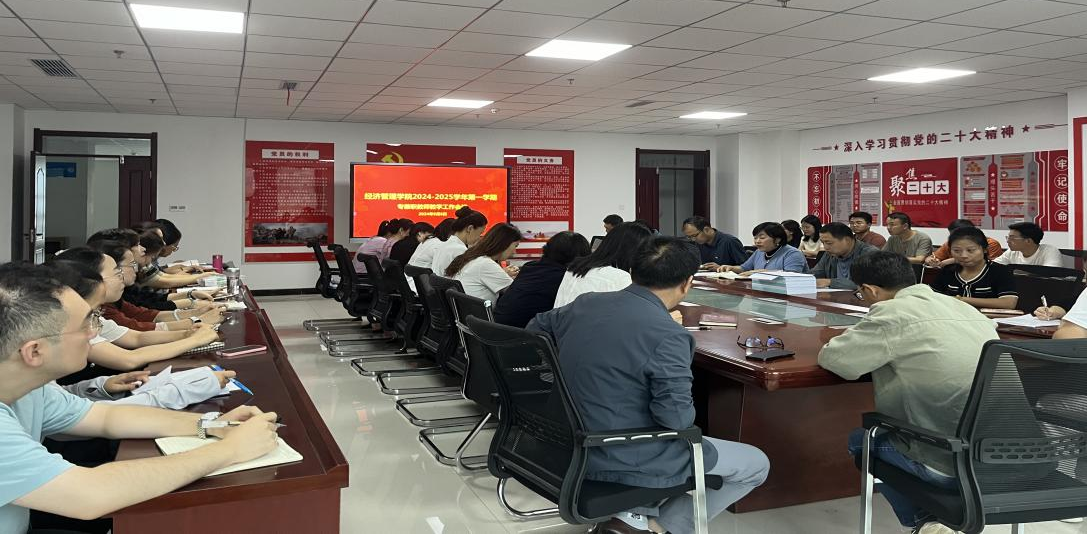 为保障学院教学与管理工作平稳运行,9月6日下午,经济管理学院在明德楼A901会议室召开2024年9月全体专兼职教师教学工作会议。学院党总支书记谢宏斌,院长王玥,副院长李金龙,副书记赵红红及全体专兼职教师参加会议,会议由王玥主持。