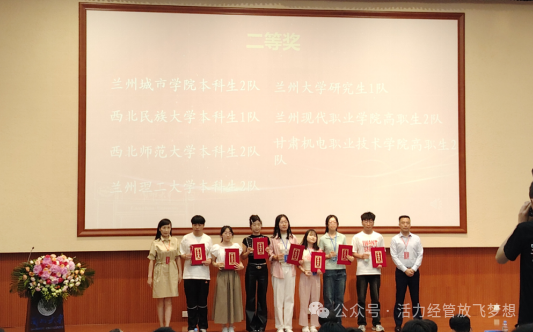 5月25日,由甘肃省教育厅主办、兰州新区商贸物流投资集团有限公司和甘肃省企业创新发展研究院协办的第四届甘肃省高等学校新商科大赛在兰州大学隆重举行。这场比赛汇聚了甘肃地区各大高校的商科精英学子,他们以创新的思维、独到的见解,展现了新时代商科人才的魅力。经过紧张而激烈的角逐,甘肃机电职业技术学院经济管理学院参赛团队获得二等奖和三等奖的佳绩,为学校争得了荣誉。