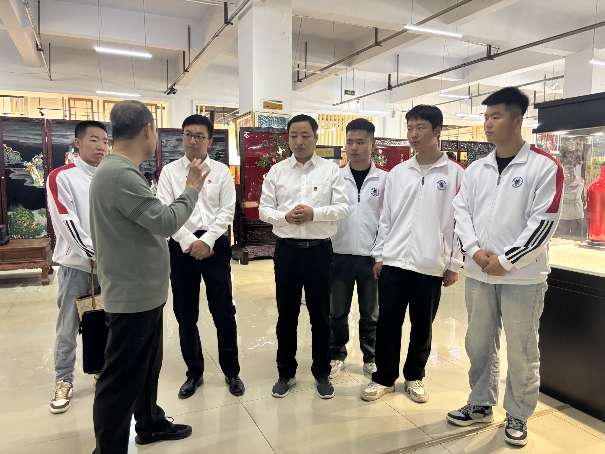 为响应2025年职业教育活动周“一技在手,一生无忧”主题,5 月17日,甘肃机电职业技术学院经济管理学院党总支书记谢宏斌、院长王玥带领30余名师生,走进国家级非物质文化遗产“雕漆技艺”保护单位——天水飞天雕漆工艺家俱有限责任公司,开展非遗文化与技艺传承实践活动,推动职业教育与优秀传统文化传承深度融合。