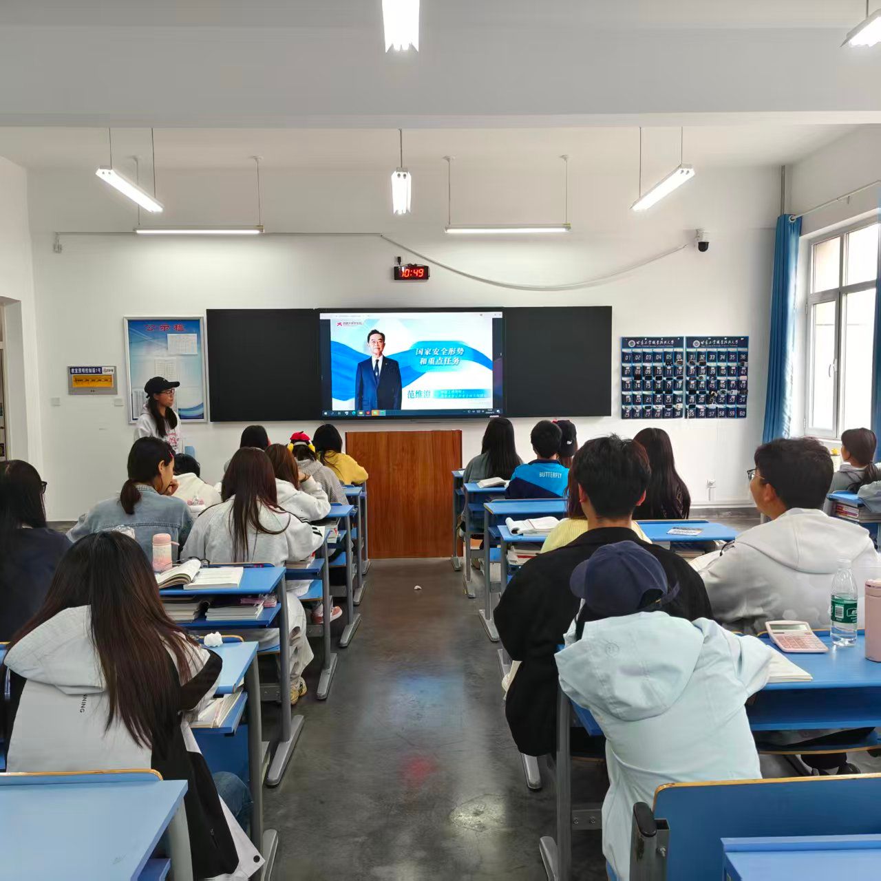 活动现场,全体学生齐聚教室,认真收看国家安全教育专题讲座。课程聚焦国家安全形势与重点任务,结合财经商贸专业特点,解读经济安全、网络安全、个人信息保护等核心内容,用鲜活案例、通俗语言传递法治理念与安全知识。同学们专注聆听、深入思考,进一步明晰了国家安全与自身的紧密联系,深化了对“国家安全,人人有责”的认知。