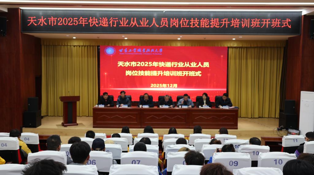 为深入落实甘肃省财政厅、人社厅《关于进一步做好就业补助资金使用的通知》(甘财社〔2024〕152 号)及天水市人社局《关于大力实施 “技能照亮前程” 培训行动分解下达天水市 2025年职业技能培训计划的通知》(天人社发〔2025〕51号)文件要求,切实提升快递行业服务质量与安全水平,推动行业高质量发展,12月30日,2025年天水市快递行业从业人员技能提升培训班在甘肃工业职业技术大学隆重开班。